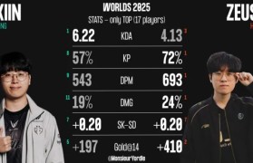 外媒统计S15瑞士轮Kiin、Zeus数据对比;Kiin在KDA方面较为领先,而Zeus在参团率、分...